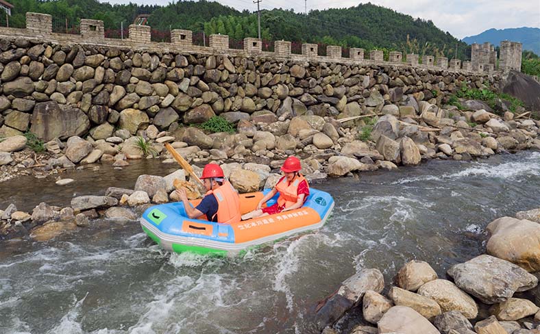 景区:一叶轻舟,载满亲情、友情、爱情,在溪流中飘荡,驶向岁月的远方。